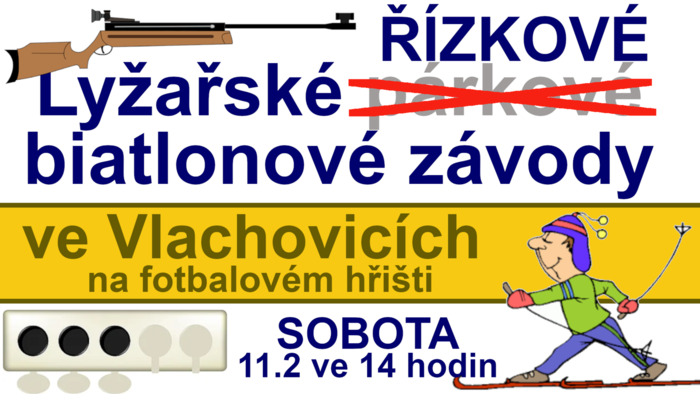 V sobotu 11.2. 2023 budou ve Vlachovicích tak trochu tradičně netradiční lyžařské závody. Začátek je ve 14 hodin na fotbalovém hřišti.