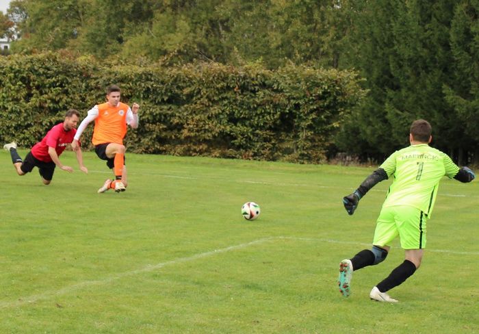 A už od prvních minut bylo jasné, kdo bude diktovat zápas. Hned po úvodním hvizdu podklouzl hostující stoper, ale Štěpán Raus se zatím jen zastřeloval. Tlak rostl a po přímém kopu, zákroku brankáře a dohrání od Roberta Bílého jsme otevřeli skóre. Druhá branka Michala Čírtka padla pravděpodobně z ofsajdu, ale platila 2:0. Po půlhodině se probudil Štěpán Raus a po prostrčení chladnokrevně zvýšil na 3:0. A ještě před poločasem Robert Bílý ukázal svůj technický um a prakticky dovezl čtvrtý gól až za brankovou čáru. Hosté byli prakticky neškodní. Snad jen jedna nastřelená tyč z úhlu. Jinak nic.
